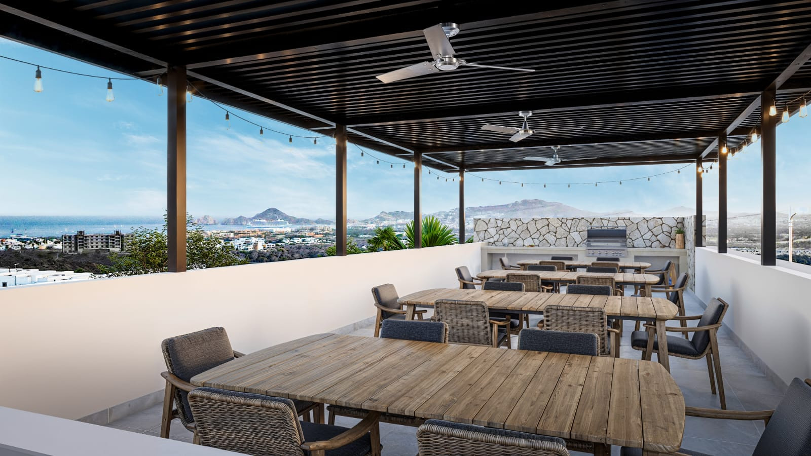 Terrazas para el Relax: Imagina terminar el día en tu terraza o balcón, sintiendo la brisa marina y disfrutando del cálido clima de Baja California Sur. Este espacio se convierte en tu rincón privado para el café de la mañana o un cóctel al atardecer.