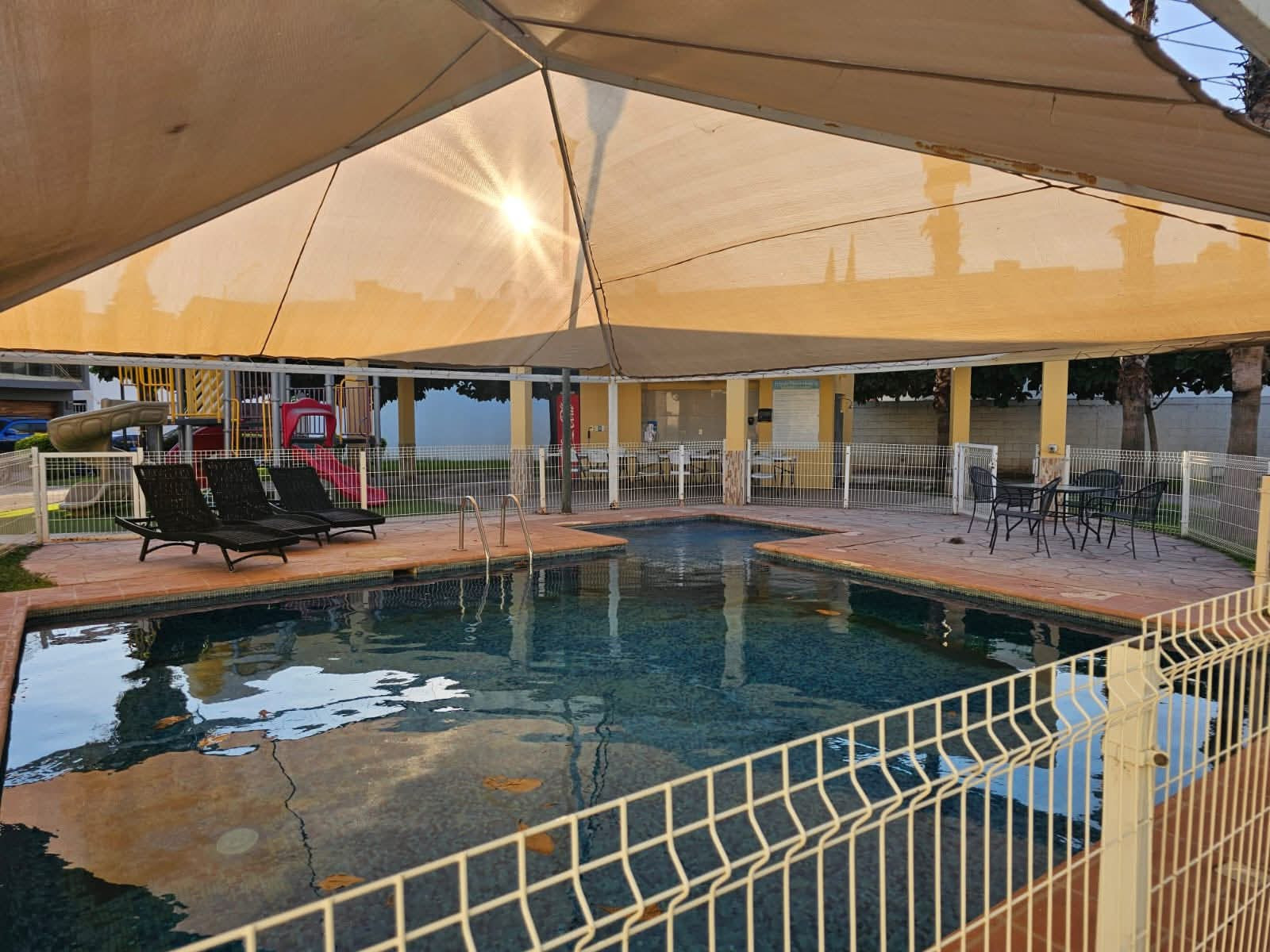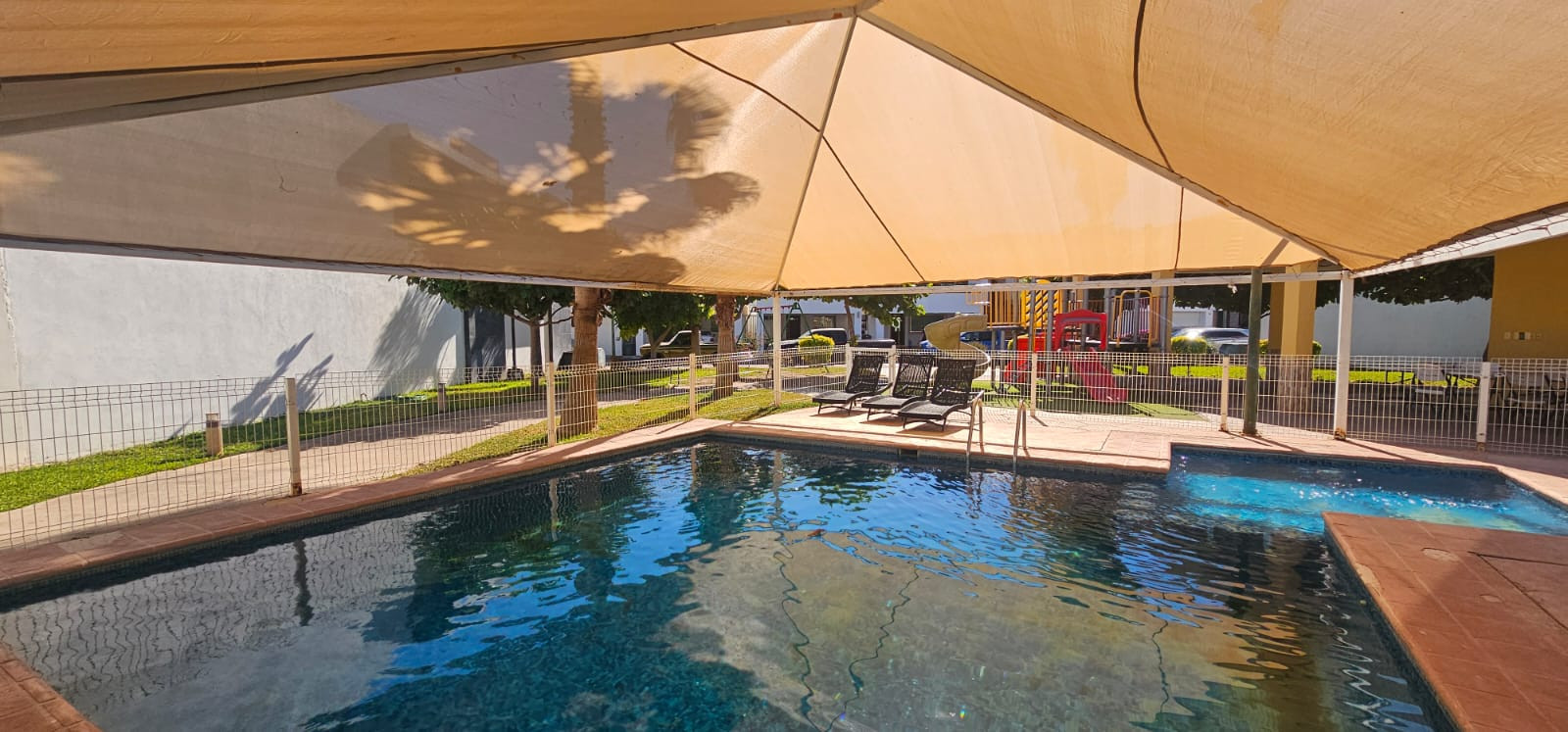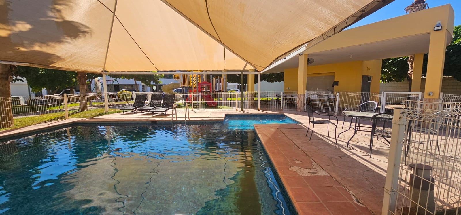 Privada con alberca y juegos infantiles